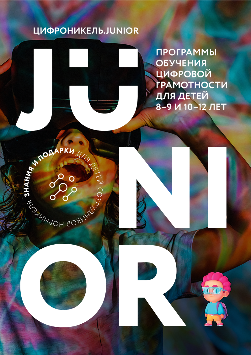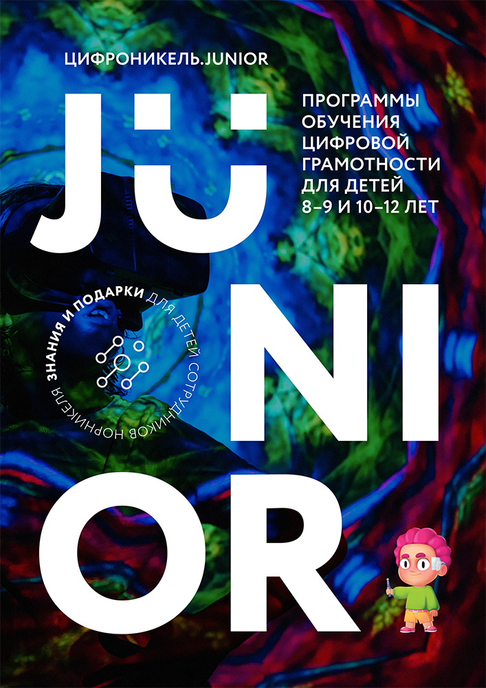 Задача: Разработать брендинг для корпоративной программы Цифроникель JUNIOR. Создать дизайн рекламных носителей: